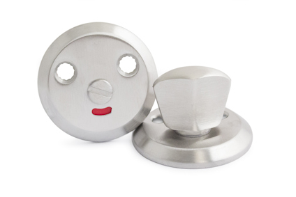 WC-beslag av rostfritt stål. Levereras med skruvar för genomgående fastsättning samt träskruvar. 2 st M5x65 mm tryckeskruvar, 2 st M5 hylsmuttrar samt 4 st 4x12 mm träskruvar. Passar till dörrtjocklek 38-42 mm. Läs mer