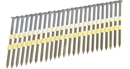 21° Plastbandad stomspik med runda huvuden för en snygg finish. Plastbandningen är ej känslig för väta. Används för att fästa samman virkesdelar i trä, exempelvis träreglar. Finns i två utföranden – Varmförzinkad spik samt Rostfri A4. Läs mer