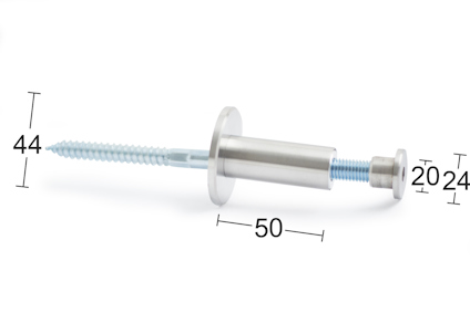 Ledstångsbeslag av rostfritt stål. Skruvstift M10x165 mm. Toppmutter för insexnyckel, art. nr 30908 och 30909 med spår för vanlig skruvmejsel. Läs mer