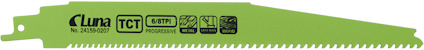 Tigersågblad med hårdmetalltänder Luna Progressive Progressive. Sågblad med hårdmetalltänder för elektriska tigersågar. Hårdmetalltänder för lång livslängd och sågning av de hårdaste material. Individuellt slipade tänder för hög flexibilitet och skärförmåga för de allra tuffaste demoleringsjobb. Progressiv tanddelning för både tjocka och tunna material. Extra tjockt för optimal stabilitet. Lämpliga för bearbetning av trä med spik, stål och metallprofiler. Levereras i SB-förpackning om 1 eller 3 blad.