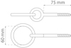 Förankringsögla av stål, Ø 60 mm. Ringens utvändiga mått är 60 mm. Svetsad skruvögla, längd 75 mm, 10 mm trägänga. Maxbelastning 100 kg (beräknat värde, garanteras inte). Läs mer