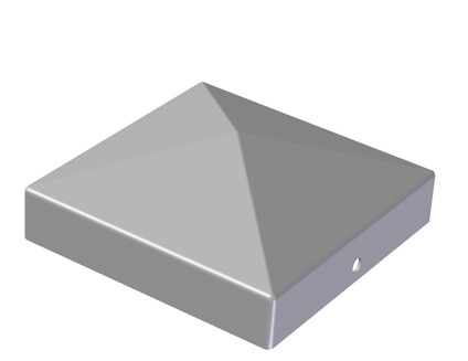 Stolplock i galvaniserat stål och med UV-lack. Mått: 96 x 96 mm.